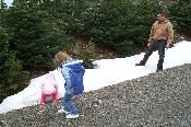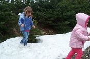 Both girls enjoyed the little patch of snow.