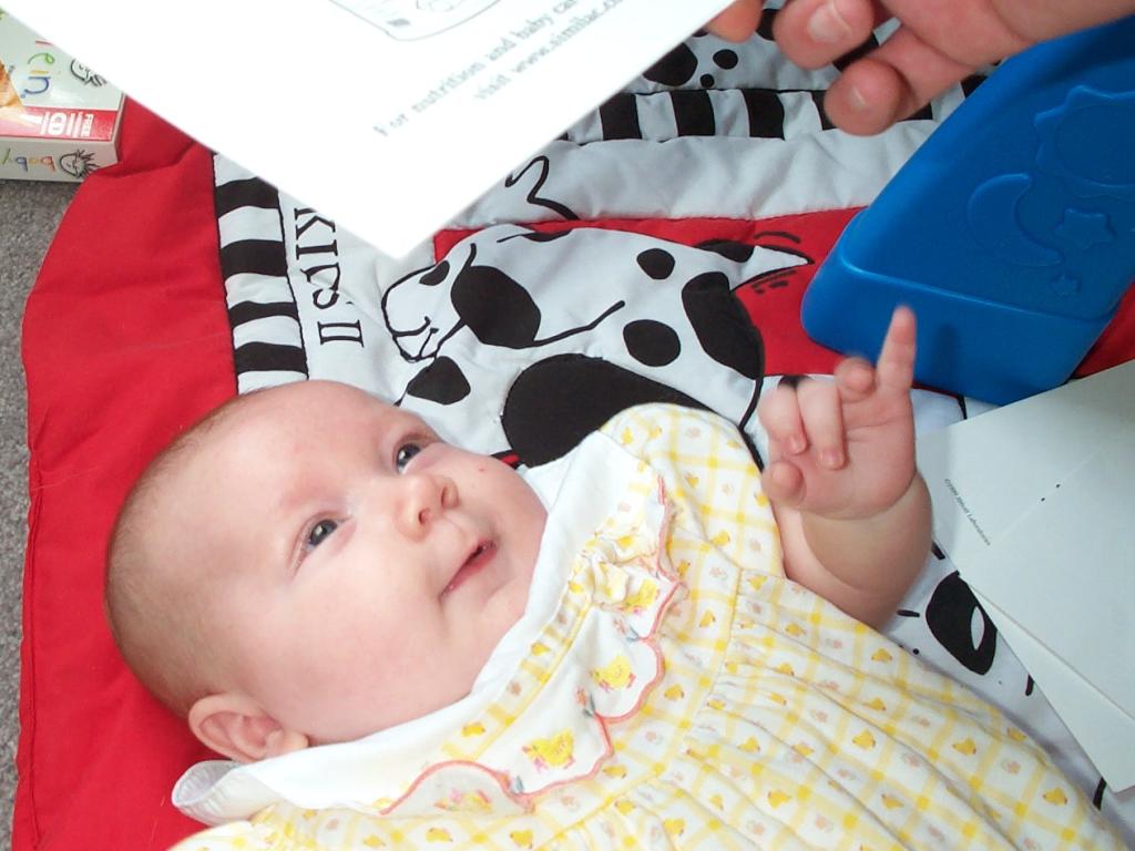 Moira just passed three months last week, quite the milestone. She is up to six ounces of formula per sitting, and that seems to occur about every twenty minutes