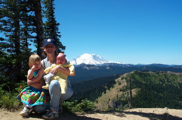 Moira, Kirsti, and Delaney posing with Mt. Rainier in the background.
