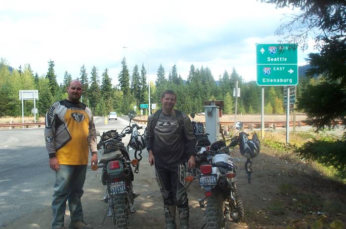 Same spot looking towards the highway, with Scott, Mike, and a road sign. From here we crossed the highway, and continued to Lake Kachees. We turned south at the lake, continued through a very nice neighborhood, down a jeep trail, and arrived at Easton for lunch.