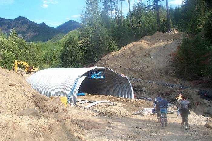 We passed the trucks coming back, and road to the end of Rd. 70 to look at the Culvert replacement project. On the last ride, the footings on either side of the culvert had been poured, but that was it. When done, it will come closer to where the guys are standing, and be filled in.