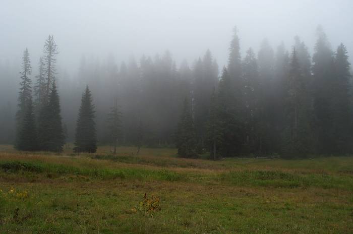 Looking from the front porch toward the edge of the meadow.