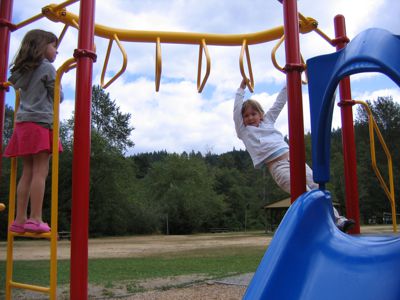 On the second day we drove to nearby Flaming Geyser State Park. There was not much of a geyser there, but there was a play set, and some open ground. Judging by the smiles, the geyser was not missed too much.