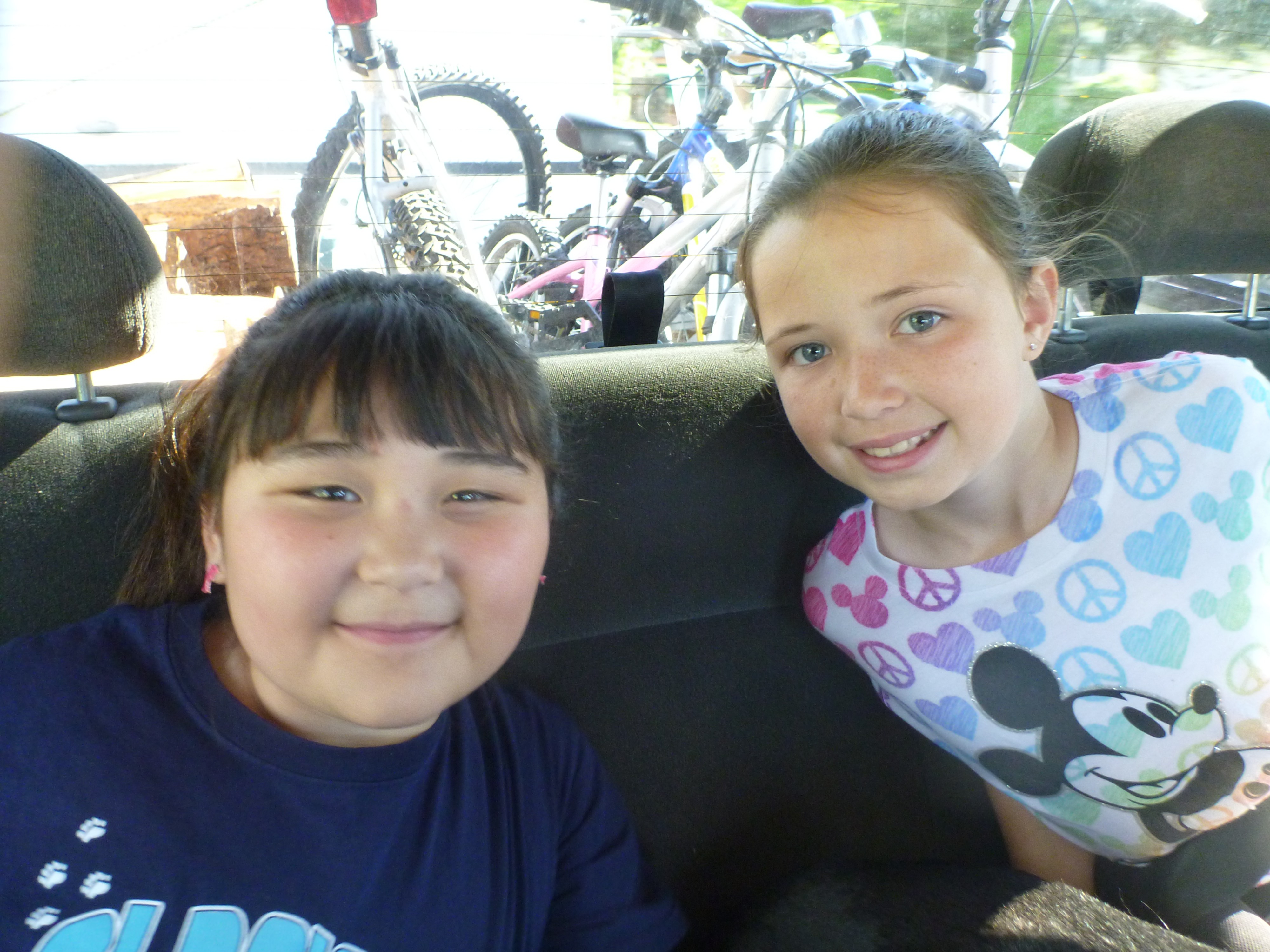 Leaving for our trip with Laurel and Delaney in the back seat.