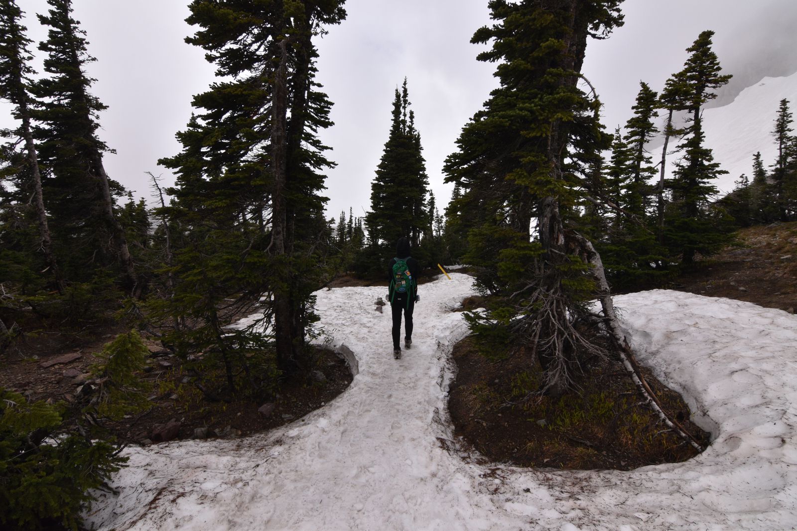 Near the top, the snow is a little more sporadic, especially with tree cover in places.