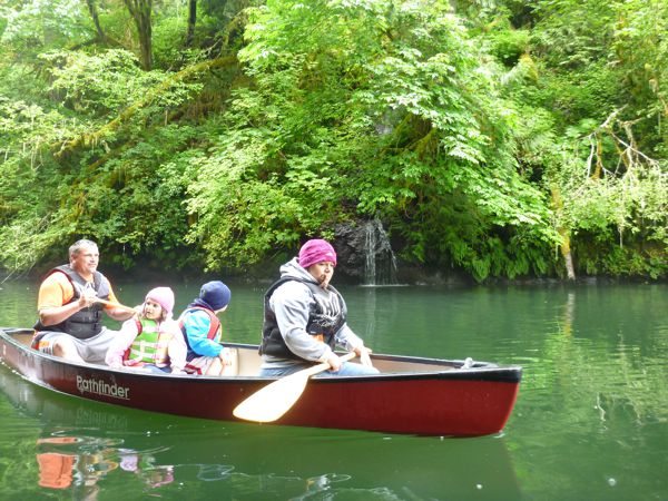 This was our 1st trip to Ike Kinswa State Park, on Mayfield Lake. It was a bit damp at times, and the park is in lots of trees, so it could be a bit dark. The lake was beautful though, and we got out in the canoe a few times. We explored the north end of the lake on two separate days with the canoe, and had a great time.