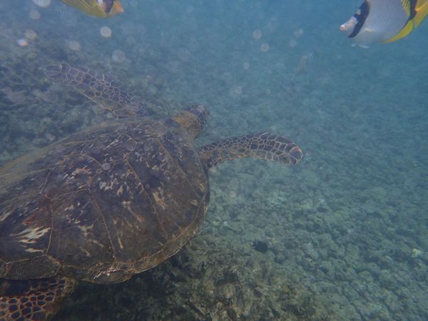 We went snorkling earlier in the day this time, and the water was much clearer (and calmer). A kikākapu - Raccoon Butterflyfish