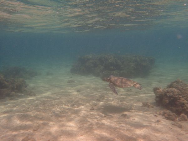 Most times the turtles would swim in opposite directions. Sometimes they would turn towards you though and you'd have to try and swim away.