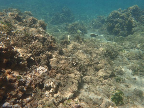 These little black fish were all over this, and as soon as you got close, they darted inside.