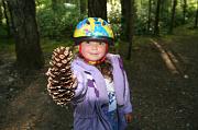We had barely arrive, and Delaney found a large pinecone. |