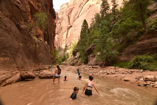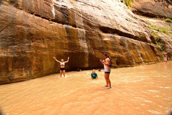We made a very short trip this long weekend to St. George Utah, and just had time to visit some of the sites that we have enjoyed very much in the past. We landed on Friday afternoon in Las Vegas, and drove directly to Zion National Park, and walked the Narrows. The river seemed lower, and definitely muddier, than it had been on our prior visits.