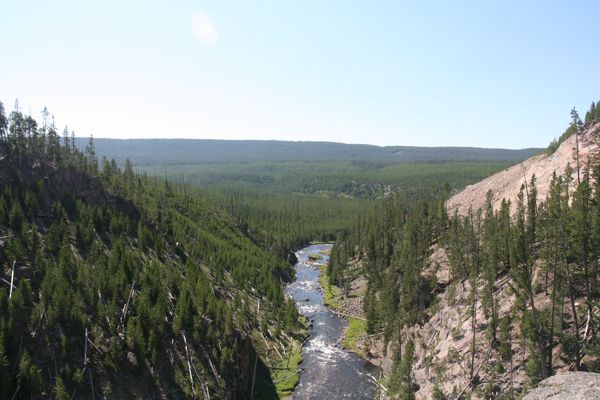 Day 2 in the park we were supposed to follow the Thomas' through the park, and we were going to hit the northwest corner of the bottom loop, and drive the top loop in a clockwise direction. That worked until shortly after the 1st stop we made. Karen & Craig found parking at the Artist Paint Pots, and we did not. We found quite a few buffalo outside the entrance road and waited, and waited, and we somehow missed them. It was a great day though, moving from pots to springs, the Sheep Eater cliffs (where we had a picnic lunch), plains/prairies, some crazy rocks that dwarfed the car, a few waterfalls, some canyons, a petrified tree, and ... ah, it was busy, and beautiful. Someone with more skills behind a camera than I would have not wanted to leave.