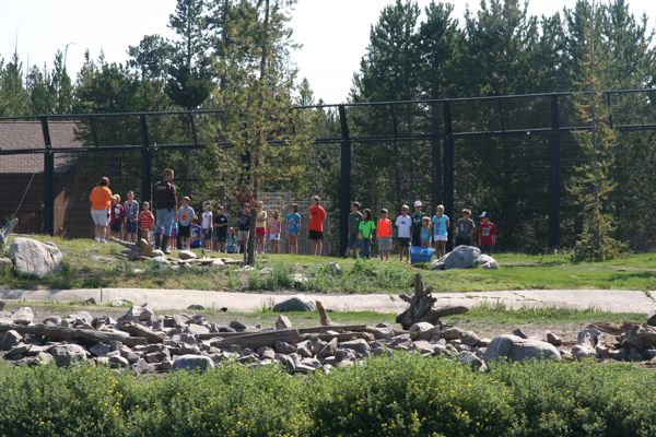 The 4th day in the park we actually started in town, at a sanctuary for bears. The kids got to go into the bear pens and hide food for the bears, who later came out. We didn't enter the park until later, one of our goals to get a sunset shot from a lookout on the eastside of Lake Yellowstone. We got to the lookout, but the clouds didn't really cooperate.