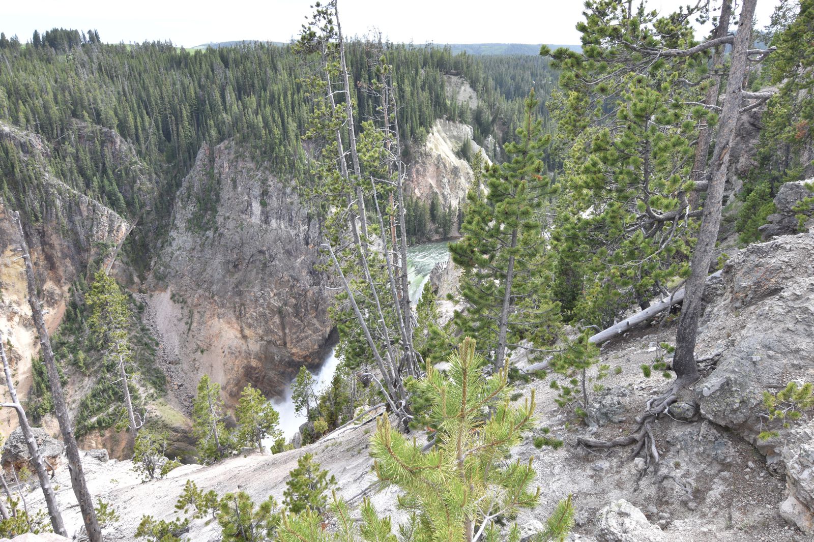 Our first glimpse of the lower falls of the grand canyon of Yellowstone