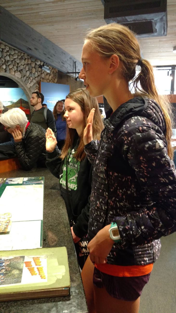 Moira and Delaney being sworn in for their Junior Ranger badges.