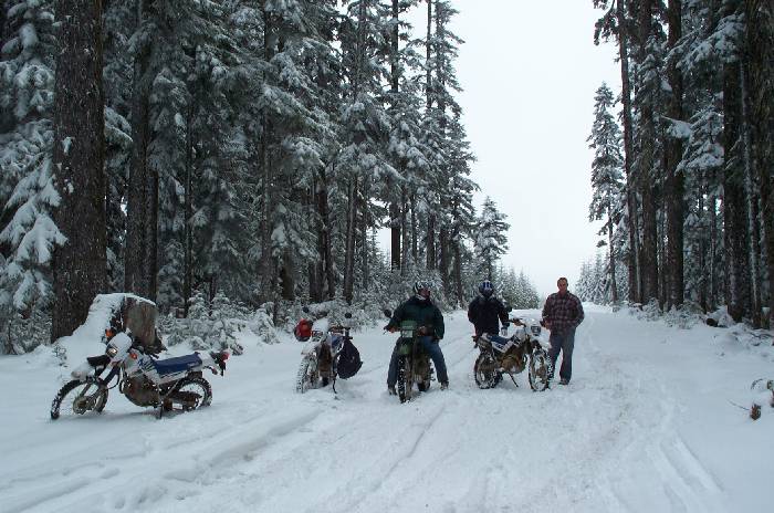 Same spot, different view, looking down the road towards the last entrance to the Naches trail before Gov't Meadows. Scott, Mike, and Kelsey pictured.
