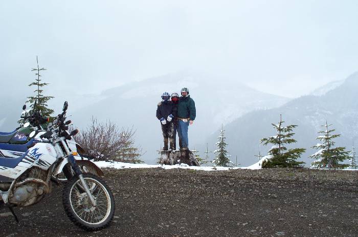 Mike, Kelsey, and Scott found a stump. During our brief break, the hills in the background kept going in and out of view with the changing weather.
