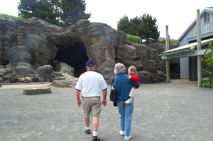 Papa, Oma, and Moira heading off to see the Octopus, Seals, Otters, and Birds.