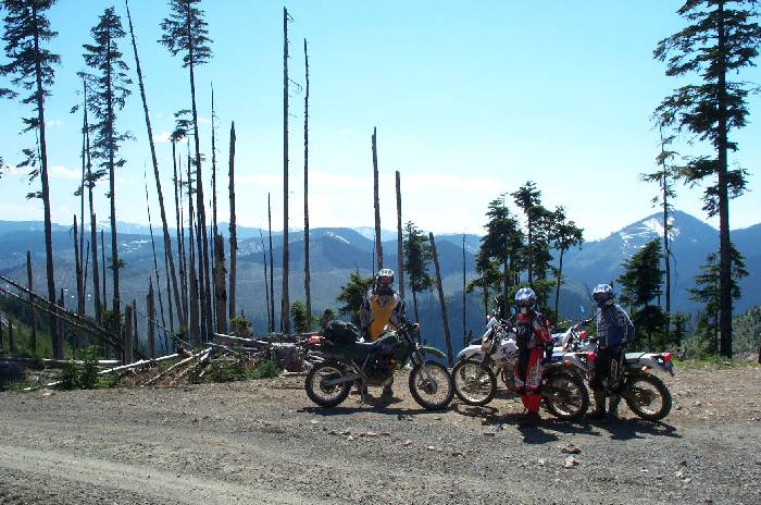 Scott, Ed, Mike with their backs to Mt. Rainier. Almost exactly a year earlier on a ride with Doug (