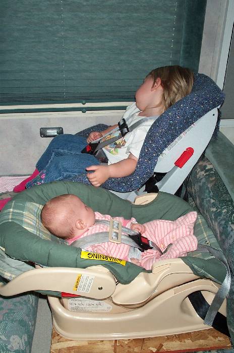 On the road again, with Moira and Delaney sleeping. They did very good on this trip, not creating much stress for Mom or Dad.
