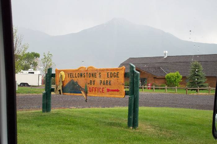 We finally arrived. Just behind the park is the Yellowstone river, with a mountain range in the background. Very pretty.
