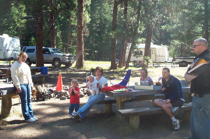 Just arrived at Kaner Flat, Doug had been able to grab the group site ahead of us, which made for a nice spot. Karen, Moira, Delaney, Kirsti, Jennie (sp?), Mike, and Scott