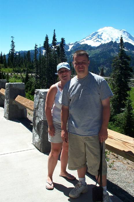 Brother & Sister, Paul and Karen, with Rainier in the background. Look, we're smiling.