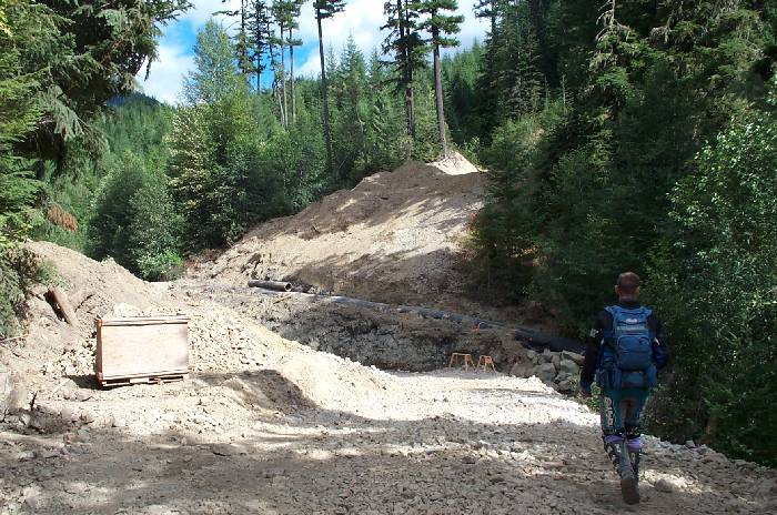 The 'real' road is probably 50-70yds off of Dougs left shoulder. We are on a recently doug access road, that leads into a pit, apparently to place a culvert into for the river to drain through.