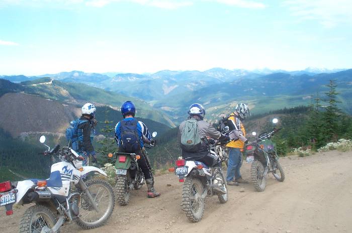 The first switchback down the north side of Green Pass. When we were here on the prior ride, I could see nothing but cloud. Pictured are Doug, Rob, Mike, and Scott.