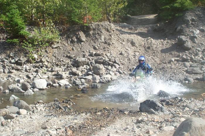 It looks like Rob is sinking, which is a possibility considering the size of his bike. The crossing here is actually very tame, with a smooth base, and no real boulders to contend with.