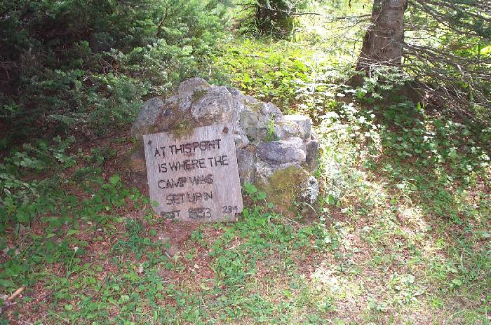 A sign indicating this is where the Longmire Wagon Train camped in the fall of 1853 before heading down towards the Puget Sound.