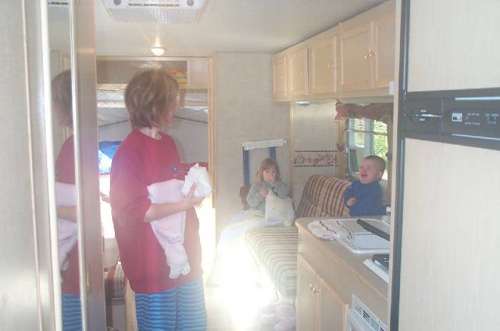 I'm not sure why this pic turned foggy/glarry, but it did. This is the 1st night after getting to the campground, with the girls ready for bed.