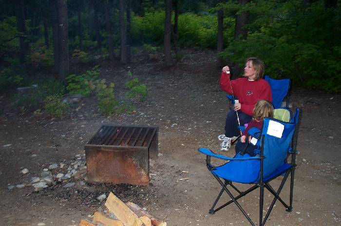 Mom pulling it from the stick. Moira likes to burn her marshmallows, which is lucky, because Kirsti and Moira like to eat them burnt.