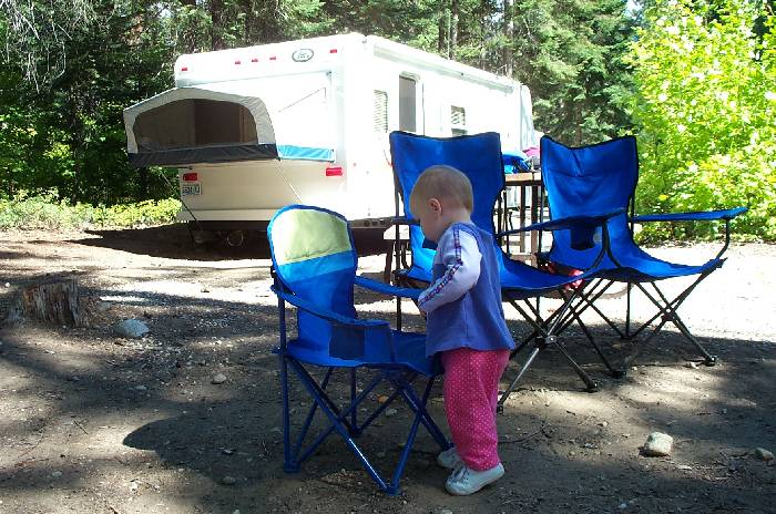 Scoping out Moira's chair (Delaney has her own).