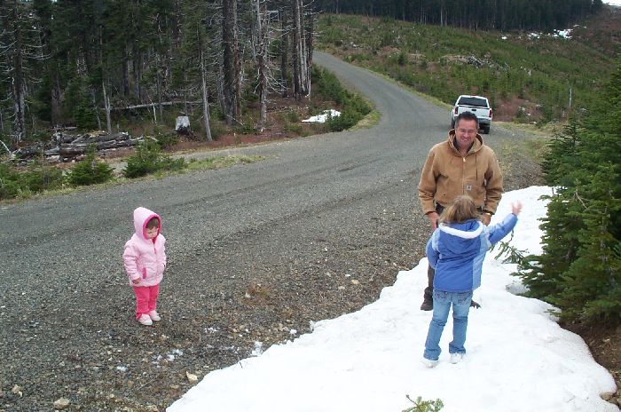 Moira and Ed having a snow fight. Delaney played a neutral party in this one.