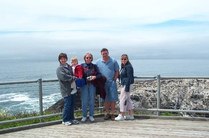 On the way back, we stopped off at one of the two lighthouses near Depo Bay and Newport. The little ridge behind Kirsti/Moira/Oma/Craig/Karen is actually into the water, and covered by birds.