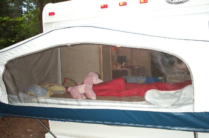 Looking into Moira's bed from the outside. Notice that her 'friends' made the trip.