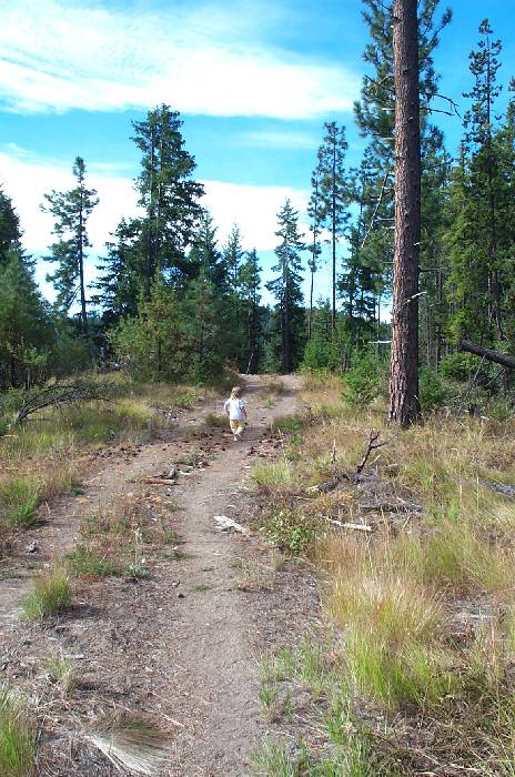 Running down a slight dip before getting to the real peak fo the 'mountain'.